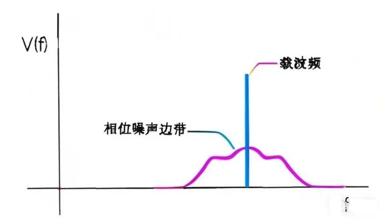 图2 在频域中,相位噪声表现为载波两侧噪声边带
