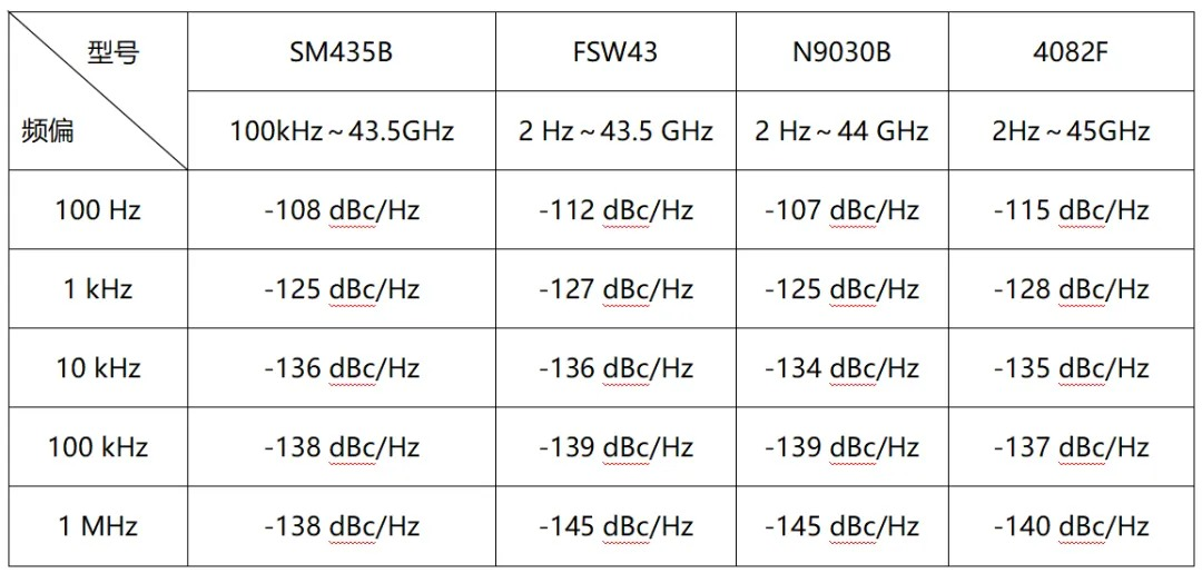 我们对目前市场几款主流高端微波频谱分析仪相位噪声指标进行比较: